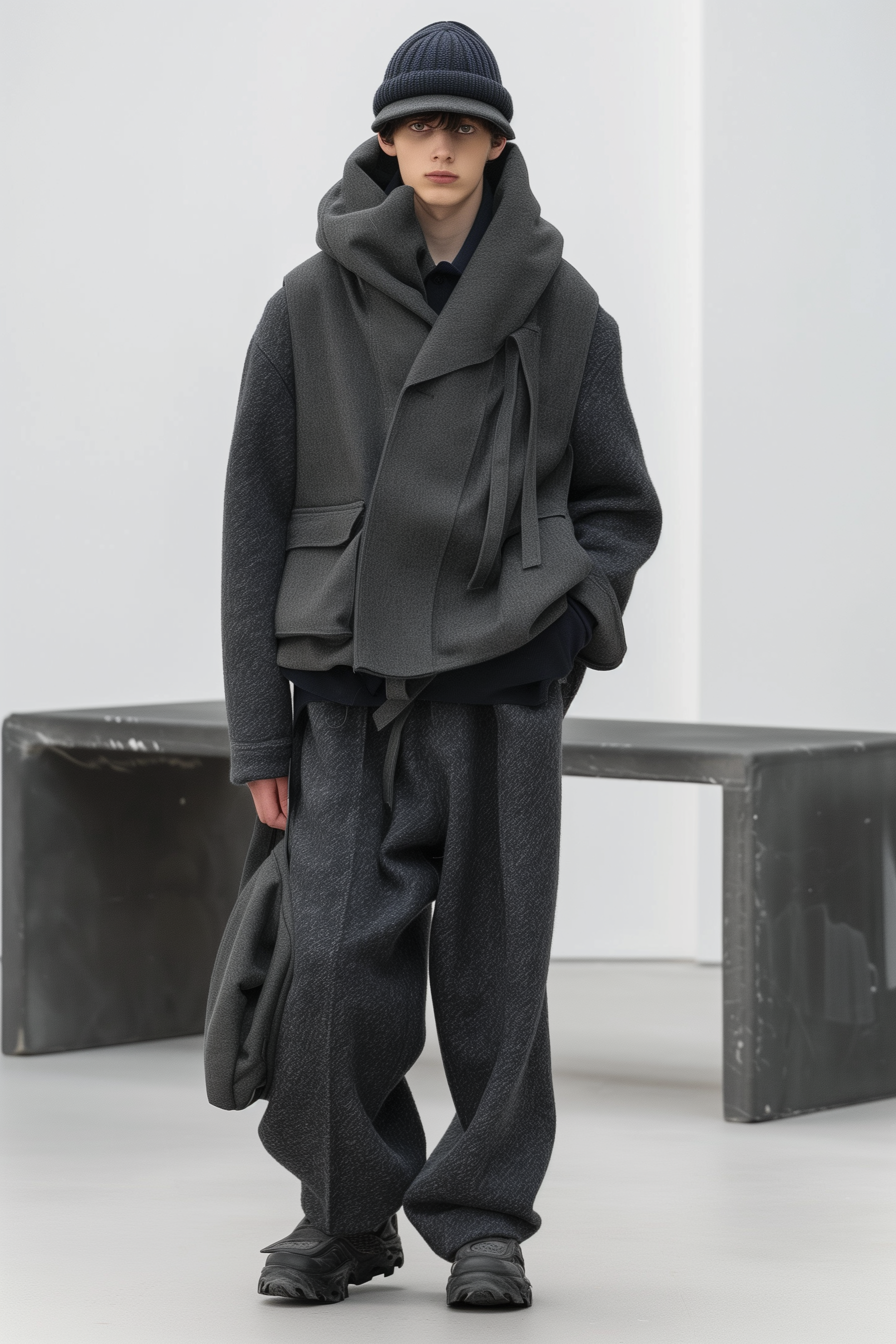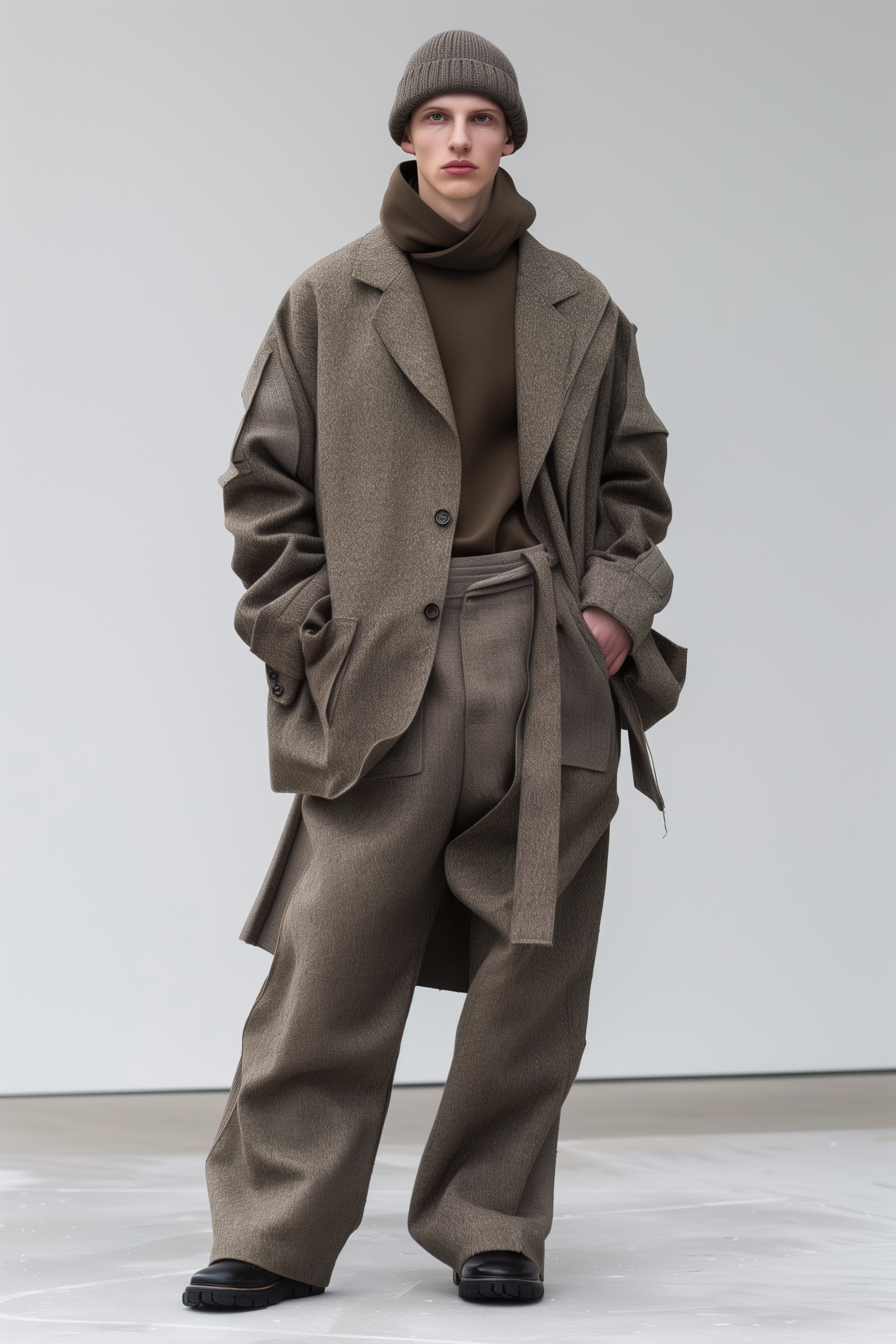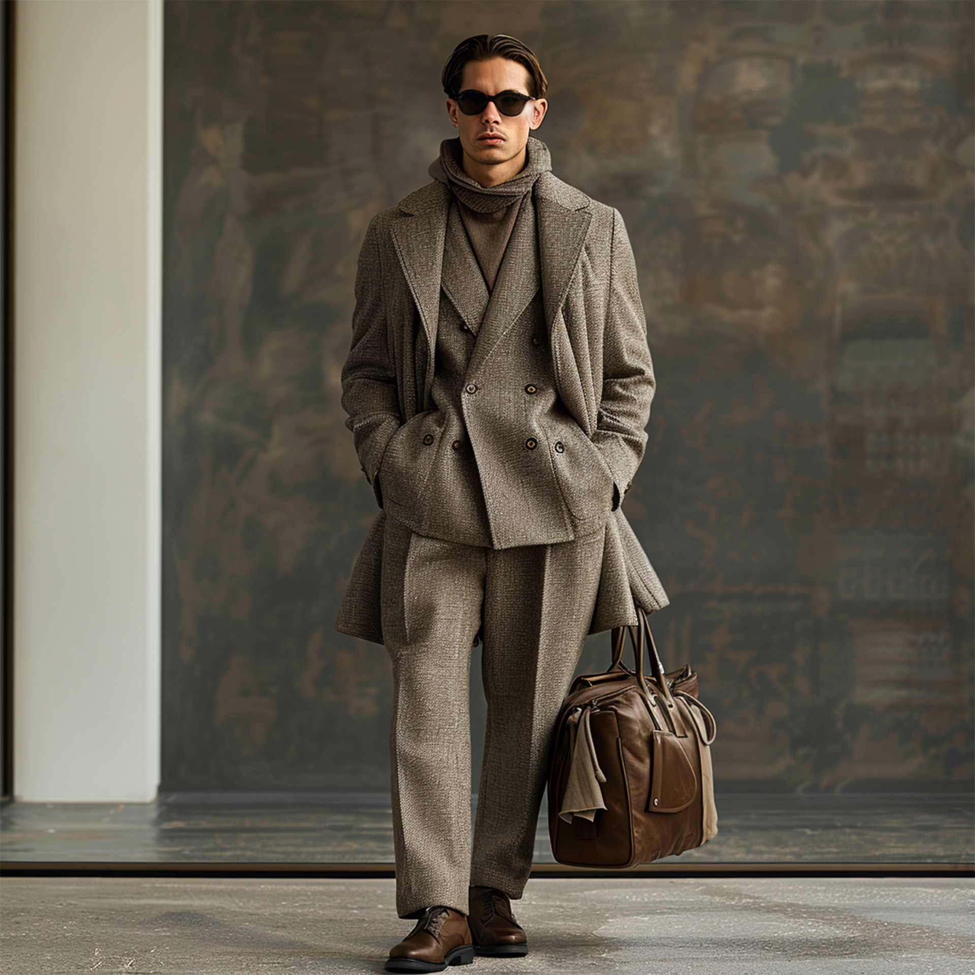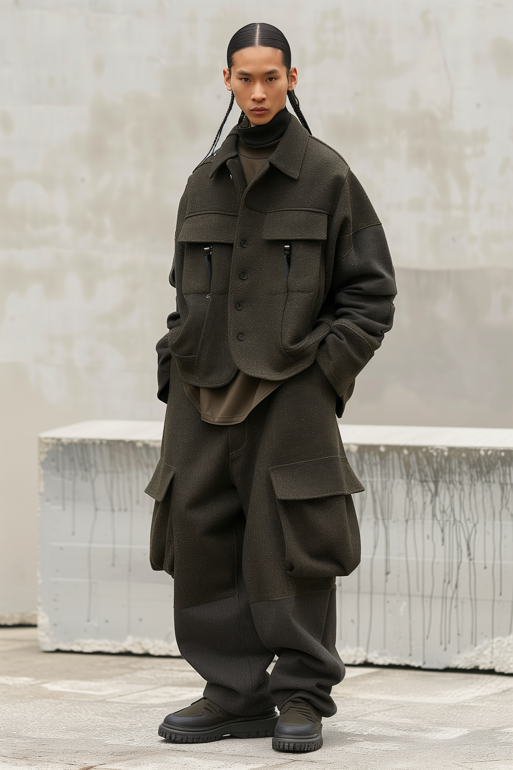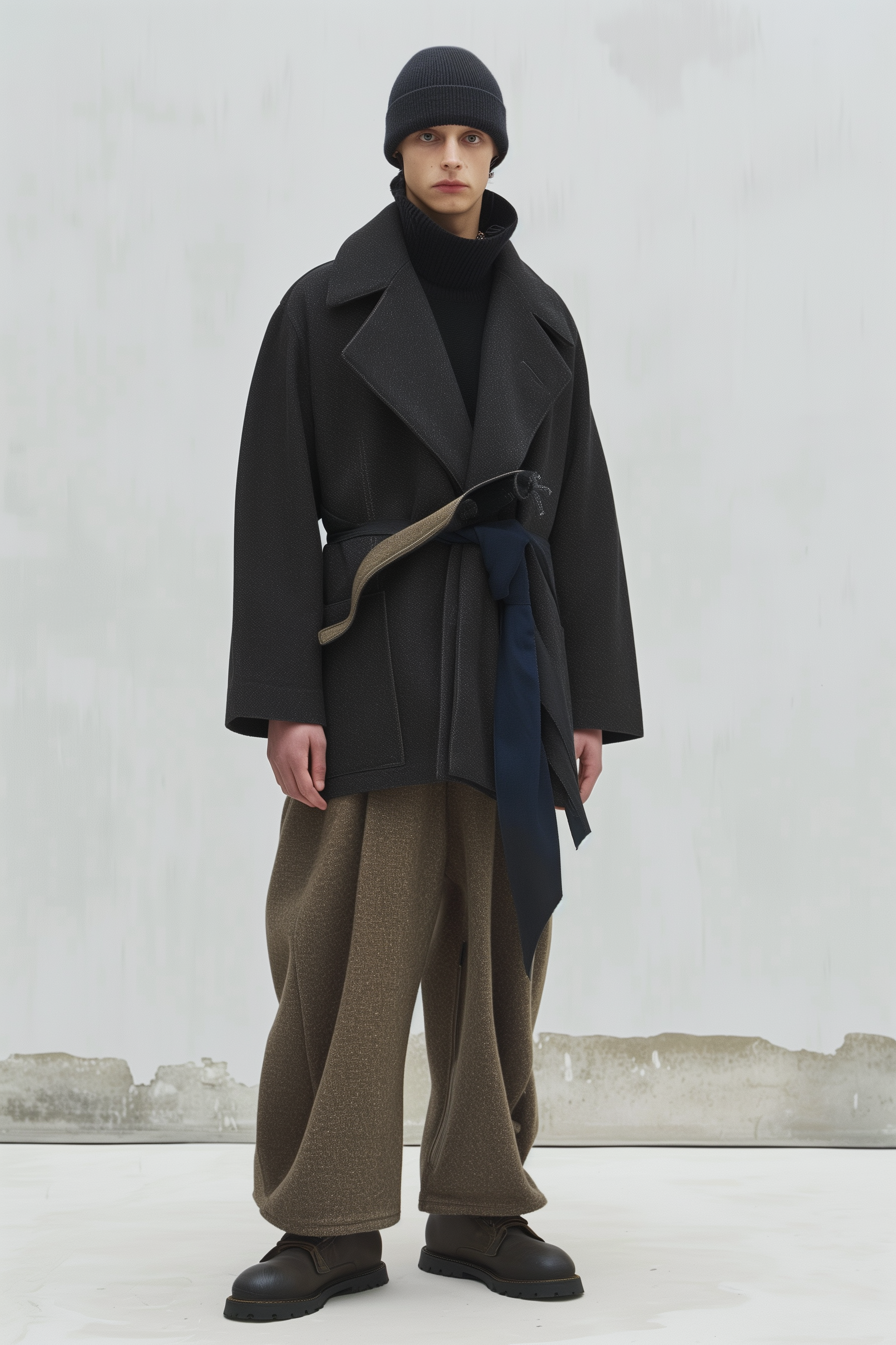 Inspired by the minimalist elegance of brands like Bottega Veneta, Zegna and J.W. Anderson, this collection embodies the essence of quiet luxury. It blends simplistic, refined design with a deep appreciation for high-quality materials, including premium leathers and wools. Drawing from old-school military workwear, each piece conveys strength and utility, reimagined for modern sophistication. This collection champions understated luxury, where subtlety speaks louder than excess, and craftsmanship takes center stage.