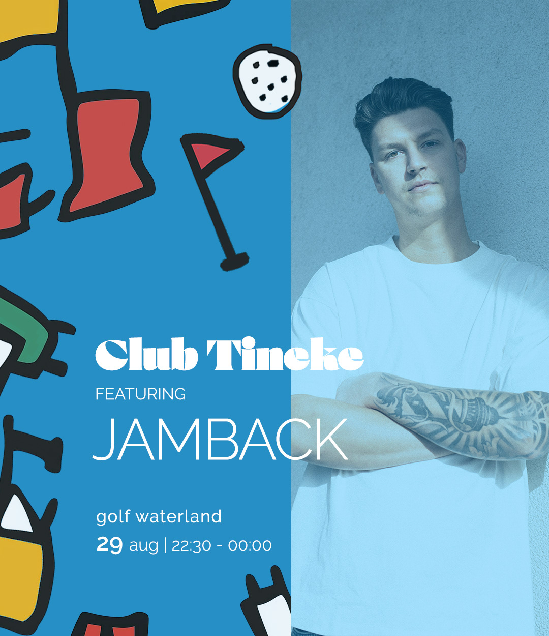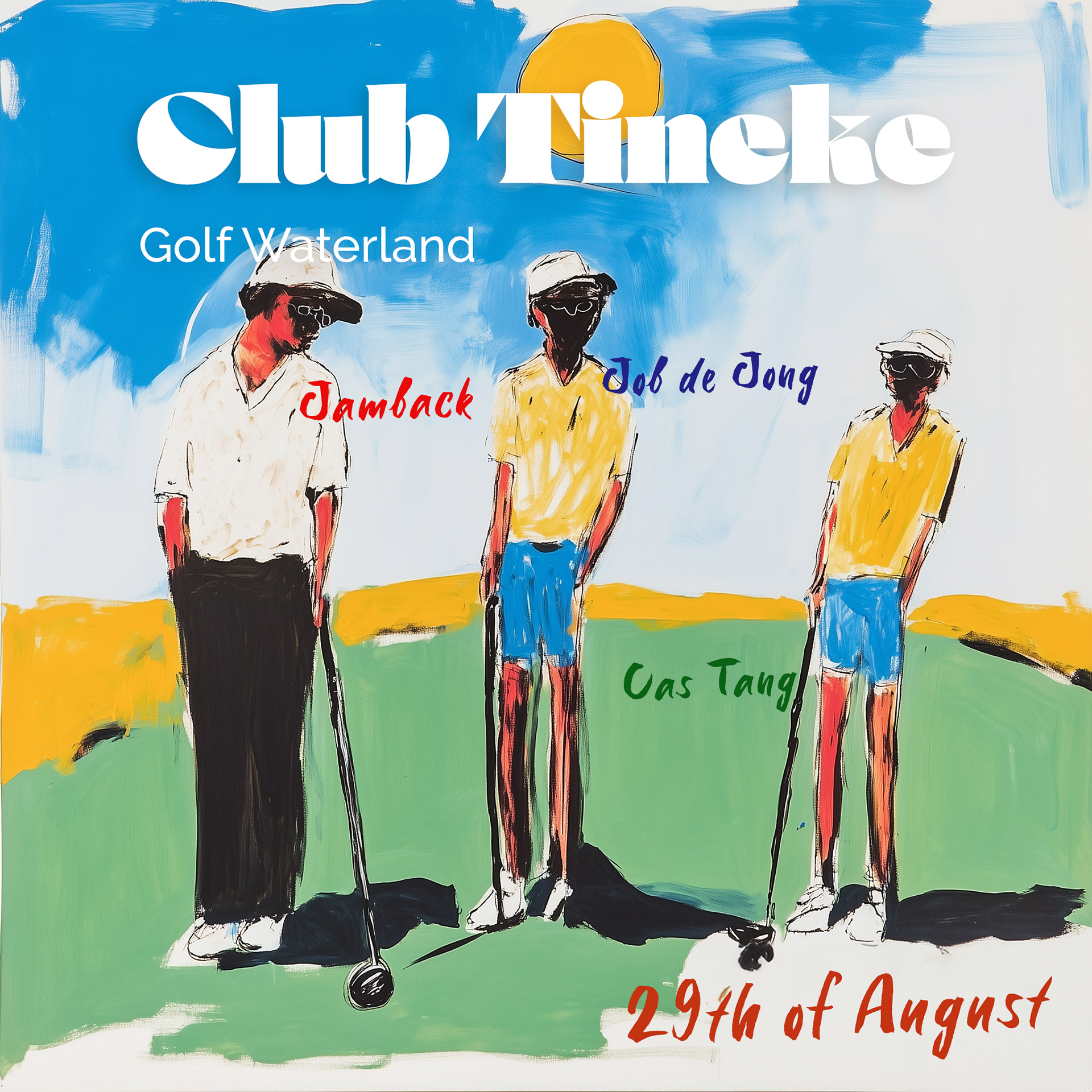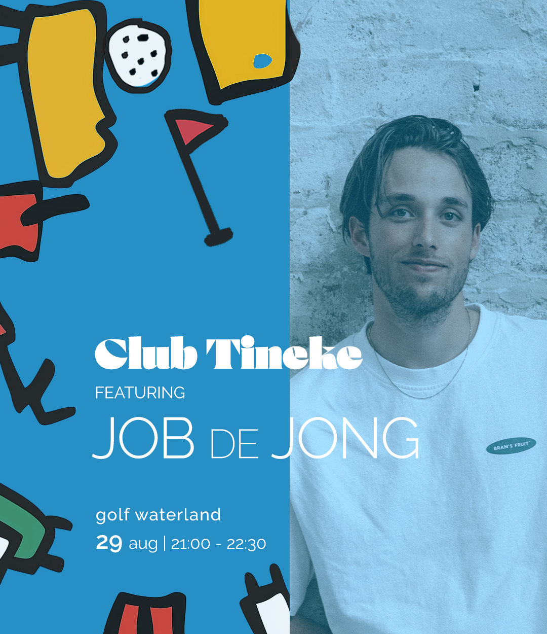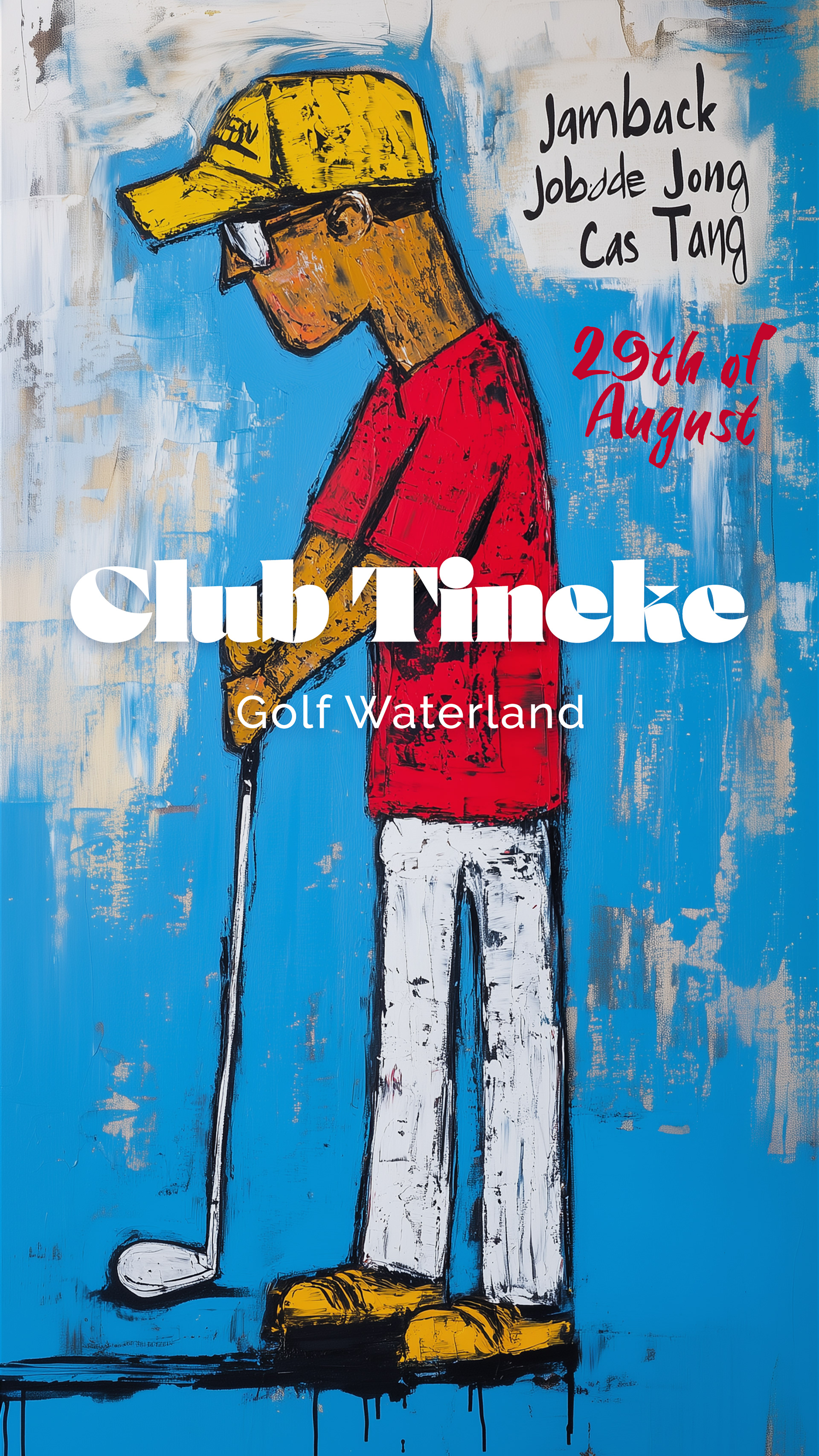 For the second Club Tineke event, I wanted to challenge myself creatively and design a unique promotional style. Half of the DJs came from the Herman Brood Academy, so I drew inspiration from Herman Brood’s iconic art and combined it with the golfing theme of our event. Using AI tools like MidJourney and DreamMachine, I crafted distinctive visuals that fused Brood’s energetic style with golf, resulting in one-of-a-kind promo art. The design included promo posts with event details, lineup designs, and artist introductions, all featuring AI-generated artworks in the Herman Brood style.